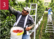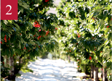 With a special pruning on the cultivation stage, the proper exposure of cherries in the sunlight enhances the cherries' color and sweetness.
